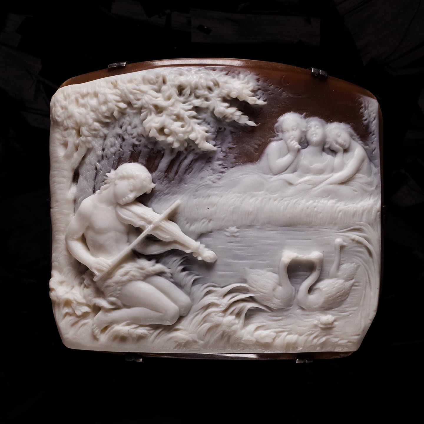 摩耗無しの傑作ラーヴァカメオ。大粒で立体彫刻の際立つ逸品。