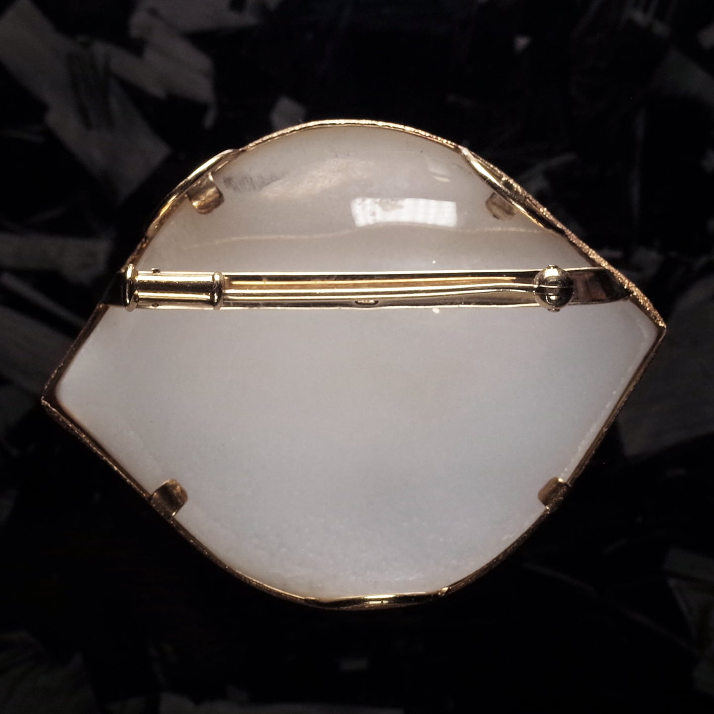 フレームが付いているので少しわかりにくくなっているものの、窓のように風景を切り取る枠とその外側の真っ白とのバランスやコントラストも実に美しく、カメオ単独で作品として成立している大変完成度の高い作品となっております。