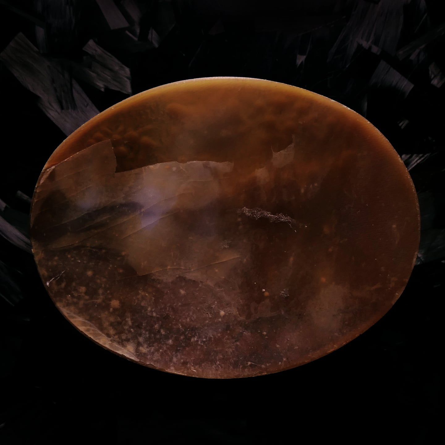 また光にすかしてみると褐色層にヘアラインがそれなり見受けられるも、すべてこの薄層にあるようで本体の方には認められず、見た目に反して状態のいいカメオとなっております。