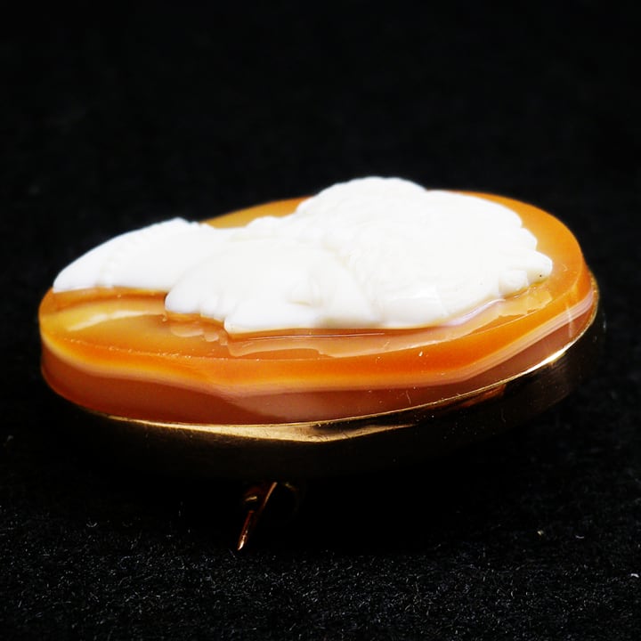 比較的大型のものではスモーク状のメノウであることが多く、この大きさでコントラストの強いメノウカメオはなかなか見ることが出来ません。