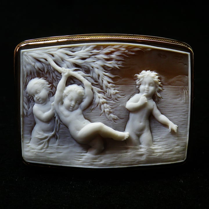 ノト作のカメオの中でも数が少なく高値で取引されるアートピースのひとつ。