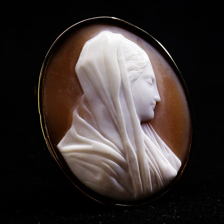 今回のお品物は色の濃淡の美しいマリア像のカメオ。