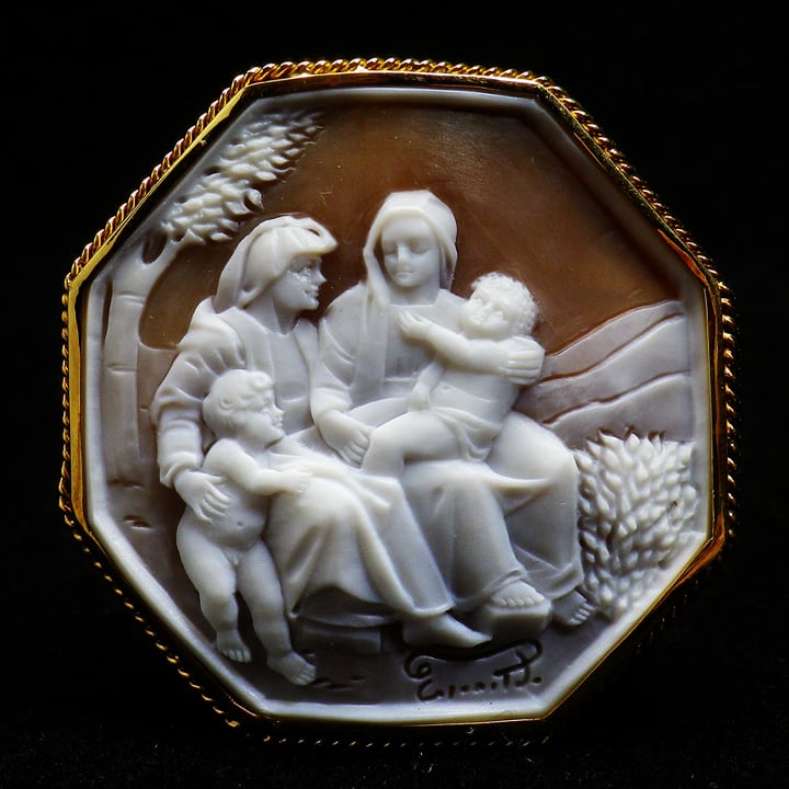 この絵画は”小椅子の聖母”と共に19世紀からカメオの題材として使われることがあった人気のあるモチーフです。