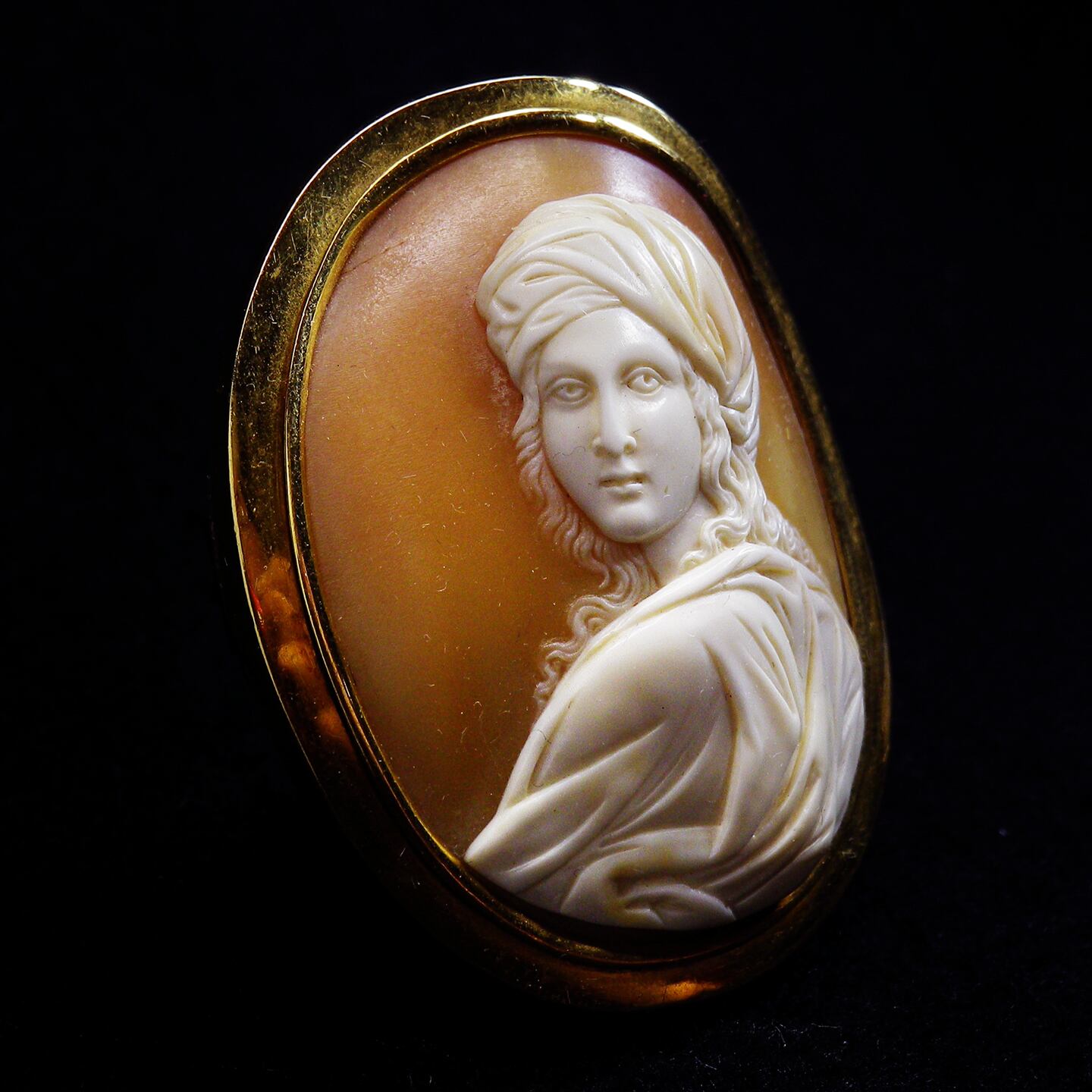 本作は正面顔のカメオに分類され、例にもれず光の当て方で印象が著しく変わってくる作品です。