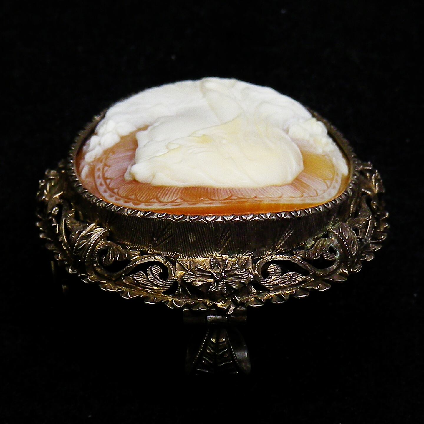 同様のノト作のカメオが良く収まっている金属細工師の手による彫金枠で、色合いを見た感じ銀800だと思います。