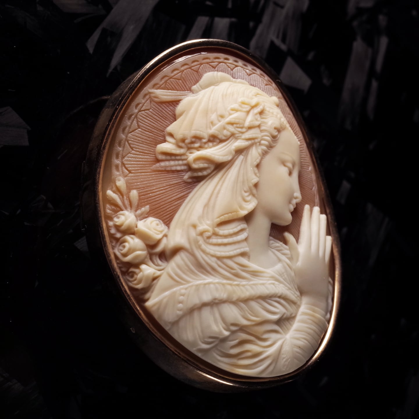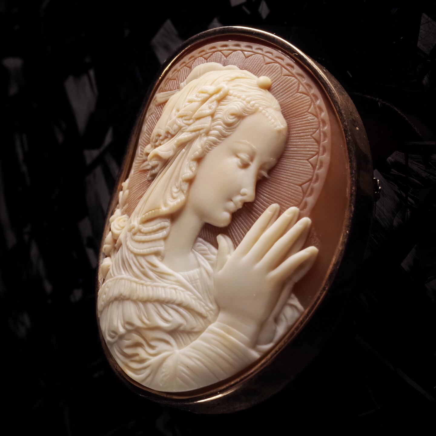 カメオ史における中興の祖ジョヴァンニ・ノト氏が得意として多く手がけたモチーフのひとつ、聖母マリア。