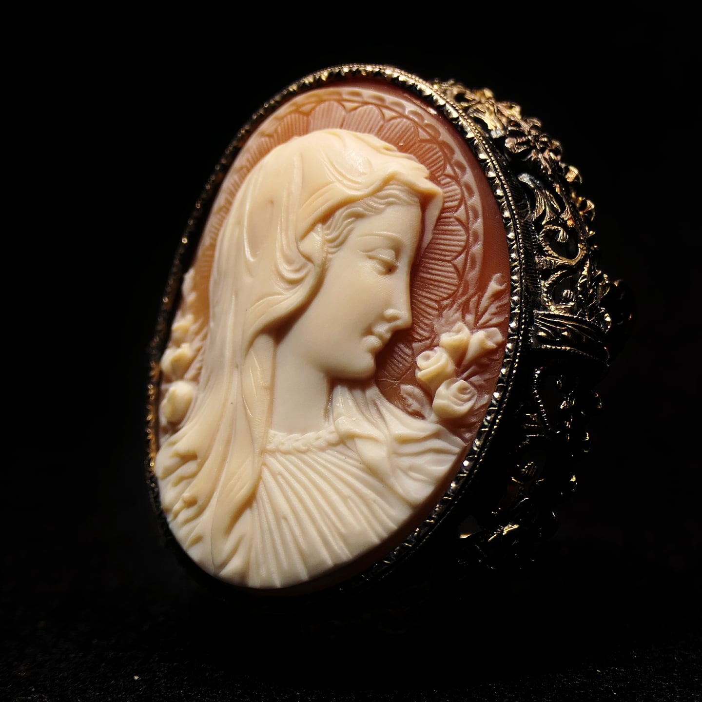 今回のお品物はノト氏の得意とした聖母像のカメオ、中でも小型のカメオとしては珍しいハイクオリティピース。